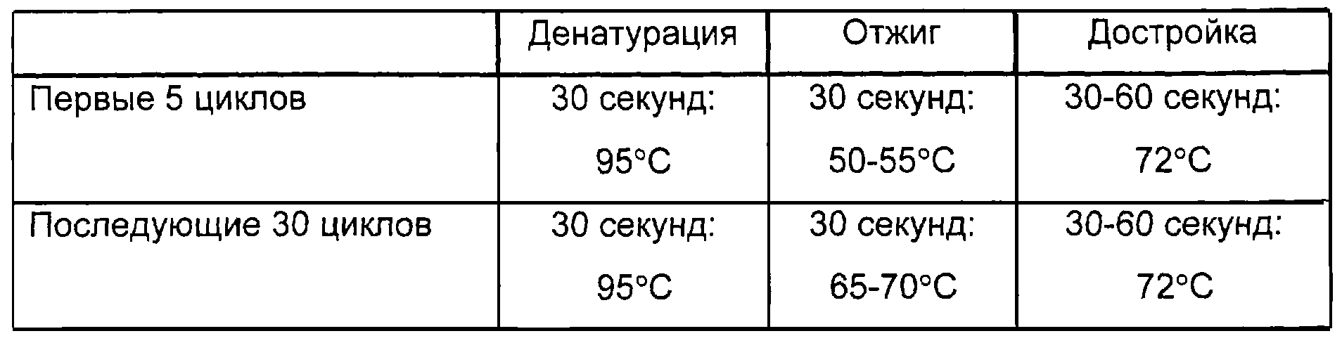 ПЦР-буфера (включающего 1,5 мМ MgCl2), 2,5 единицы ДНК-полимеразы TaqI (с использованием AmpliTaQ от Perkin-Elmer, Platinum от Gibco, ДНК-лолимеразы Pwo или полимеразы Taq от Takara Shuzo).