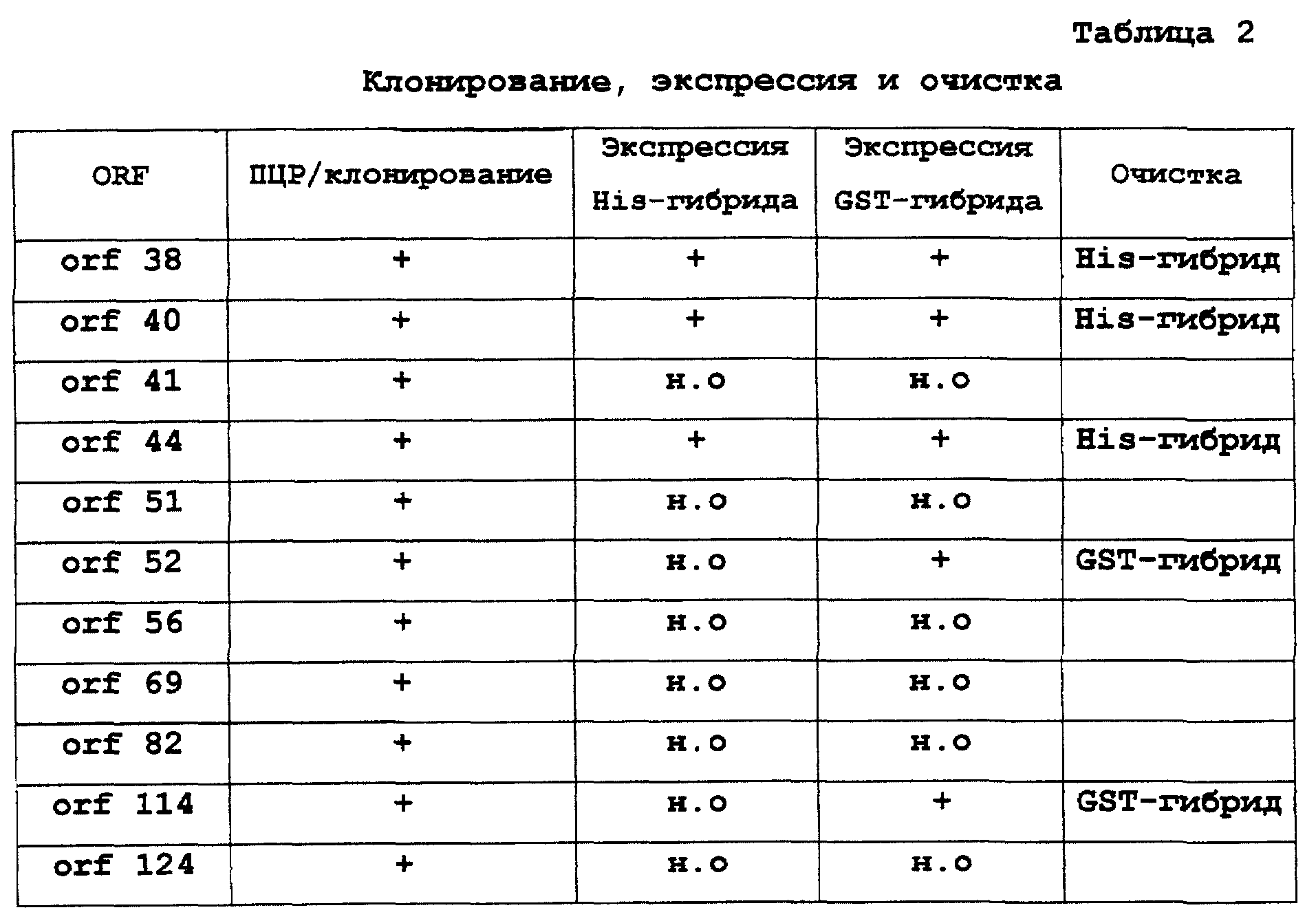 В Таблице 2 представлены систематизированные результаты клонирования, экспрессии и очистки.