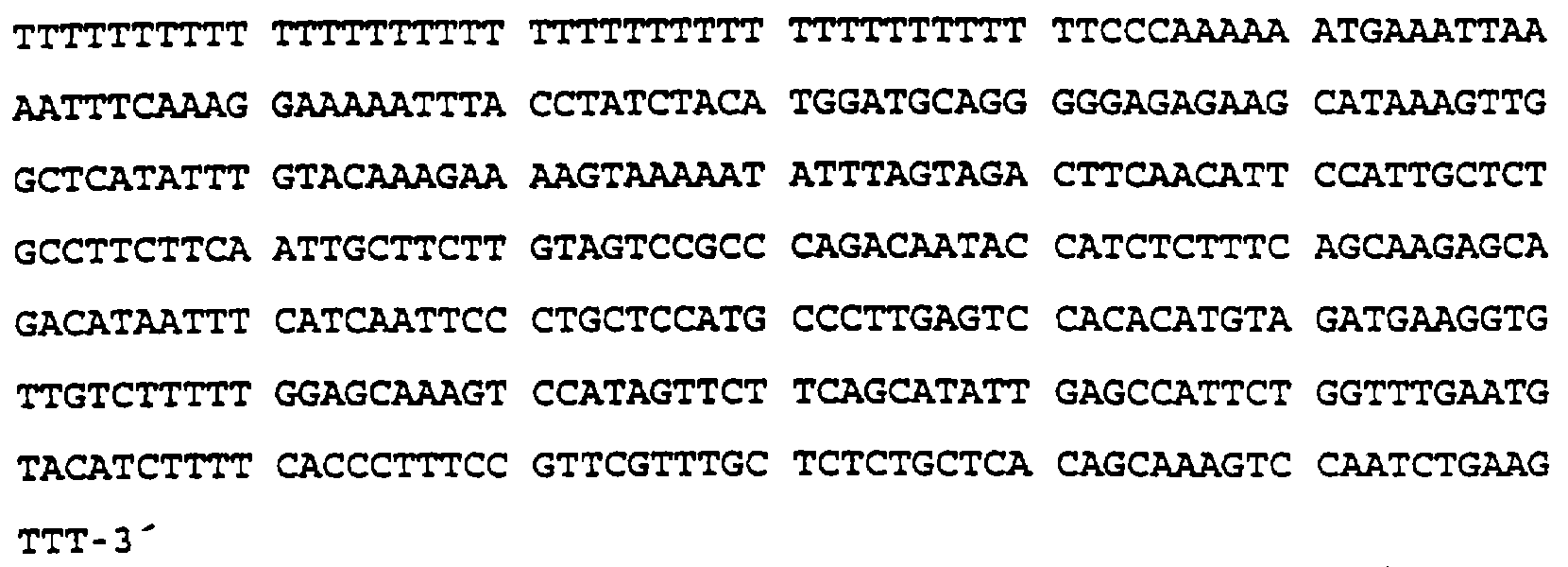 В соответствии с тринадцатым аспектом настоящего изобретения представляется полинуклеотидная последовательность (последовательности), кодирующая белок, характеризующийся существенно сходной активностью по сравнению с таковой у белков, кодируемых нуклеотидными последовательностями 2, 3, 5 и показанной на фиг.19, притом, что этот полинуклеотид комплементарен тому, который гибридизует с последовательностью, входящей в состав последовательностей 2, 3, 5 и показанной на фиг.19, притом что инкубация осуществляется при низкой или высокой жесткости, или в пределах такого диапазона. В целом условия низкой жесткости могут быть определены как 3 SSС при температуре примерно до 65 С, а условия жесткости 0,1 SSC при примерно 65 С. SSC обозначает буферный раствор 0,15 М хлорида натрия и 0,015 М цитрата натрия, 3 SSС втрое концентрированнее чем SSC, a 0,1 SSC – в десять раз слабее буфера SSC.