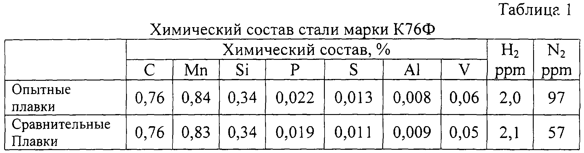 Затем ковш с металлом передавали на установку “печь-ковш”, где производили доводку металла по химическому составу путем присадки твердых шлакообразующих и дробленых ферросплавов. При этом производили нагрев расплава электрической дугой опущенных электродов и одновременно через пористую пробку в днище ковша продували расплав азотом с расходом газа 150-1000 л/мин. Во время нагрева в металл присаживали алюминий и ванадий.