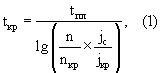 где tкр – критическая температура перехода в СП; tпл – температура плавления проводника; nкр – критическая плотность дислокации для перехода в СП; n – плотность дислокаций в проводнике; jкр – критическая плотность тока для перехода в СП; jc – скорость роста плотности тока в проводнике.