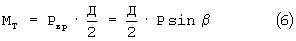 Vвращ – скорость вращения внешней колонны, м/с. Задавая частоту вращения внешней колонны nт и механическую скорость бурения (Vмех), определяется угол , а через него Рос и Рвр, а через них и крутящие моменты на внешней колонне (Мт)