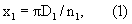 где x1 и x2 – шаг волны по окружности средних диаметров кольцевых элементов D1 и D2;