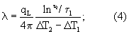 – коэффициент теплопроводности исследуемой жидкости или газа, измеренный ранее по зависимости (4);