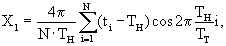 а затем переключают генератор знакопеременных напряжений, изменяющихся по периодическому закону, на следующий фиксированный период тестовых воздействий и повторяют перечисленные выше операции и определяют амплитуду и сдвиг фазы основной гармоники качаний вращающегося ротора относительно фазы основной гармоники тестовых воздействий хронометрическим способом, для чего при вращении ротора генератора последовательно измеряют последовательно интервал времени между двумя ближайшими моментами регистрации, изменения которых вызываются изменением скорости вращения ротора при введении тестовых воздействий, рассчитывают амплитуду ![]() mT и фазу от по вышеприведенным формулам.