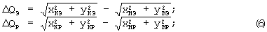 где QЭ, QР – расстояние между точками начала и конца эталонной и реальной траекторий по оси Q,