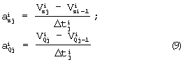 – значение контурной скорости в конце (j-1) интервала i-го участка траектории;