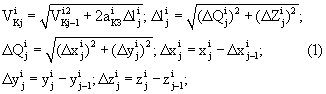– величина приращений на i -ом участке траектории по координатам Q и z;