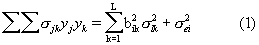 Кроме того, дисперсия для рекламного продукта Sj может быть описана с использованием двух отдельных членов, включающих в себя риск