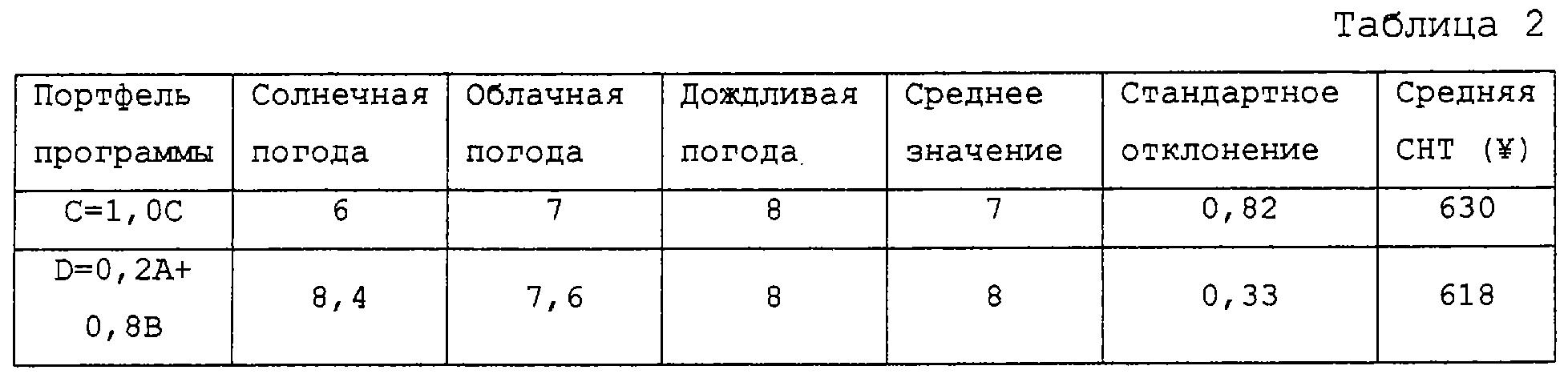 В соответствии с теорией моделирования, обсужденной выше, когда индексы определены надлежащим образом, отдачу определенного рекламного продукта можно описать аналогично случаю с индивидуальными индексами, и если этот способ применить для определения риска, то можно измерить и определить риск для множества видов моделей портфеля рекламы, выработанных с помощью настоящей системы.