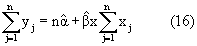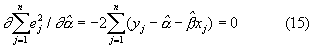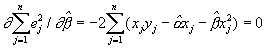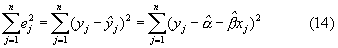 В этом случае, при использовании метода наименьших квадратов для определения и для того, чтобы минимизировать сумму квадратов остаточного ej между наблюдаемым значением yj и оцененным значением получим: