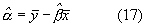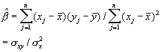 То есть предполагая, что выражение отношения n наборов данных {(X1,Y1), (X2,Y2),… , (Xn,Yn)} представлено определенной линейной функцией xj и yj, отрезок, отсекаемый на координатной оси, и наклон линейной функции может быть определен способом, описанным выше. После этого определения важным является то, что, как показано в выражении (17), значение можно оценить с помощью ковариации x и y, xy.