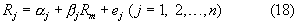 Предполагается, что n видов рекламного продукта Sj (j=1, 2… , n) существуют на рынке рекламы, и отдача рыночного индекса для определенного рекламного продукта обозначена как Rm. Предполагая, что j – ожидаемый темп изменения роста (индекс чувствительности) отдачи Rj для рекламного продукта Sj с изменением по Rm; j – ожидаемое значение индивидуальной отдачи для рекламного продукта Sj независимо от этого рынка рекламы, и ej – случайный член (ошибка) индивидуальной отдачи для рекламного продукта Sj, независимо от этого рынка рекламы, можно получить из соотношения вышеописанной отдельной регрессионной модели следующее уравнение: