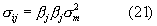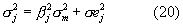 Кроме того, дисперсия для рекламного продукта Sj может быть описана с использованием двух отдельных членов, включающих в себя риск e2j, соответствующий рекламному продукту Sj, и риск 2j m2, связанный с рынком, в виде: