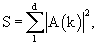 г) вычисляют сумму S квадратов модулей A(k) от первой до d составляющей,