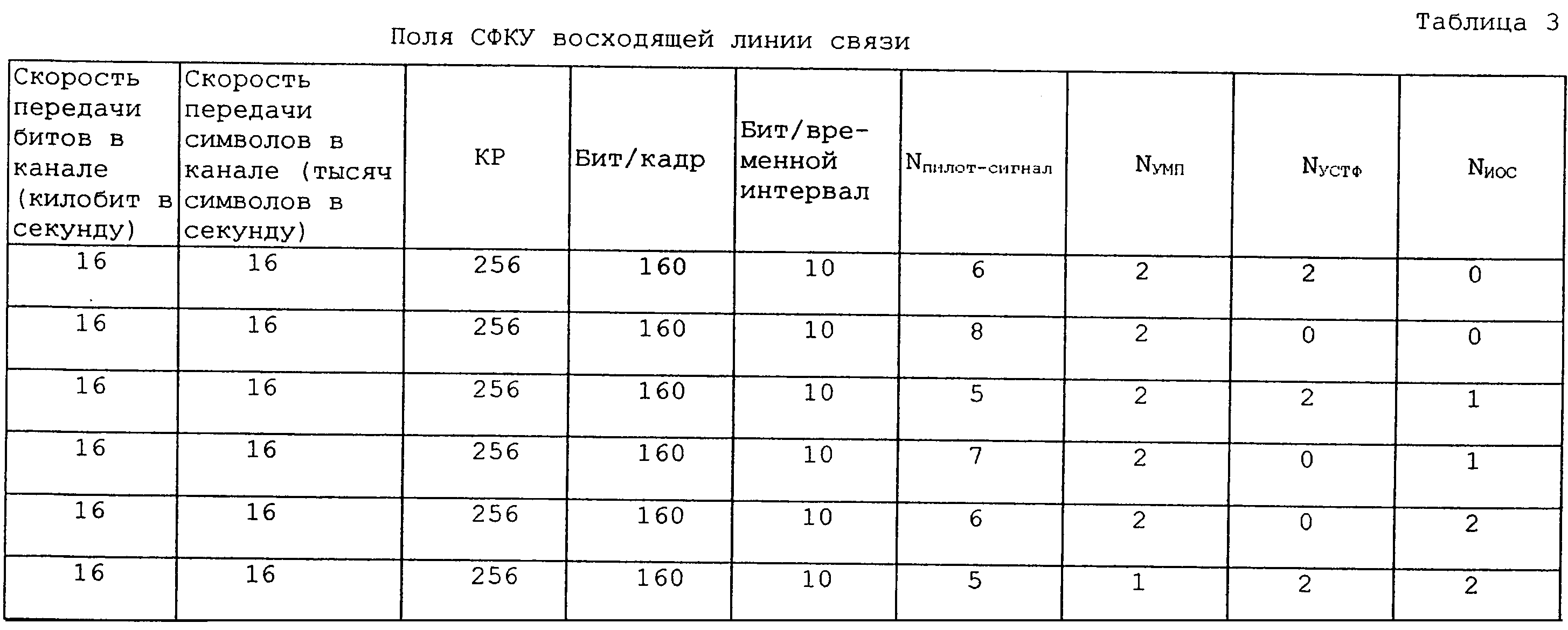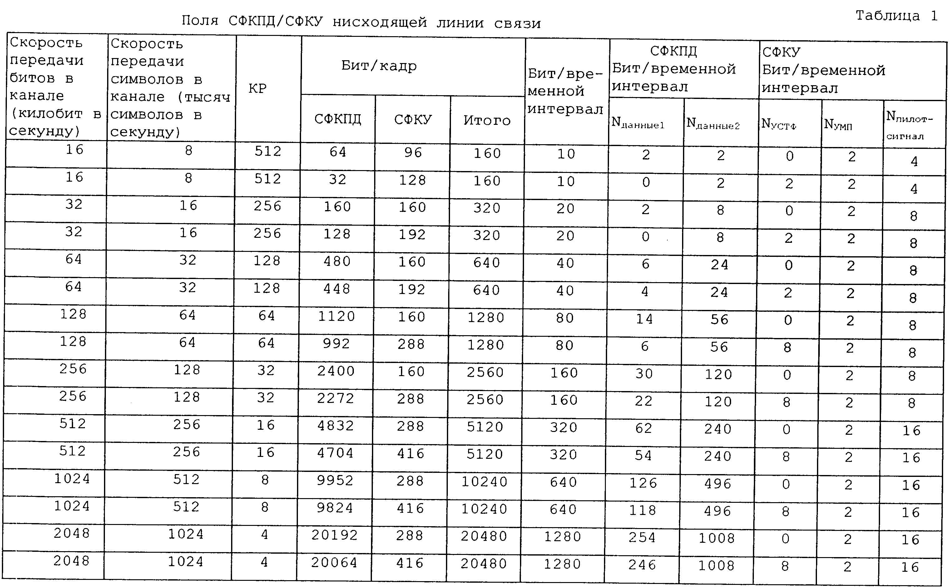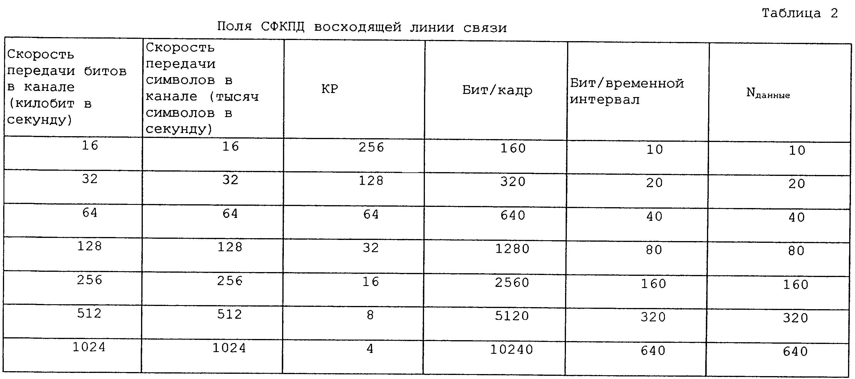 Для решения вышеуказанной задачи базовая станция (или подвижная станция) согласно настоящему изобретению определяет наличие данных, предназначенных для передачи в подвижную станцию (или в базовую станцию) по СФКПД. В случае отсутствия каких-либо данных, предназначенных для передачи по СФКПД, базовая станция (или подвижная станция) осуществляет стробирование передачи управляющей информации по специализированному каналу управления в соответствии с заданной временной диаграммой внутри одного кадра. Здесь термин “передача со стробированием” относится к передаче управляющей информации, содержащейся в СФКУ, только в конкретной группе управления мощностью (ГУМ) (PCG)/временном интервале или в нескольких ГУМ/временных интервалах в соответствии с заданной временной диаграммой. Управляющая информация, которую передают из базовой станции в подвижную станцию, содержит информацию УСТФ о формате передаваемых данных, информацию УМП для управления мощностью и символ пилот-сигнала. Управляющая информация, которую передают из подвижной станции в базовую станцию, содержит информацию УСТФ о формате передаваемых данных, информацию УМП для управления мощностью, символ пилот-сигнала и информацию ИОС, служащую для запроса информации о разности фаз между двумя антеннами при использовании в базовой станции разнесенной передающей антенны. При передаче со стробированием в СФКУ нисходящей линии связи прерывистая передача в кадре УСТФ, УМП и символа пилот-сигнала может быть осуществлена в заданной n-ой группе управления мощностью (или в одном временном интервале). В альтернативном варианте прерывистая передача в кадре символа пилот-сигнала может быть осуществлена в заданной n-ой группе управления мощностью (или временном интервале), а прерывистая передача УСТФ и УМП – в (n+1)-ой группе управления мощностью. При передаче со стробированием в СФКУ восходящей линии связи прерывистую передачу УСТФ, УМП, ИОС и символа пилот-сигнала осуществляют в конкретной группе управления мощностью (или временном интервале). При наличии данных, имеющих небольшую длину, которые предназначены для передачи по СФКПД в режиме передачи со стробированием, передача бита управления мощностью может быть осуществлена в течение всего временного интервала передачи данных, имеющих небольшую длину. Кроме того, диаграмма стробирования управляющей информации нисходящей линии связи и диаграмма стробирования управляющей информации восходящей линии связи имеют такой сдвиг, чтобы стробирование происходило в различные моменты времени.