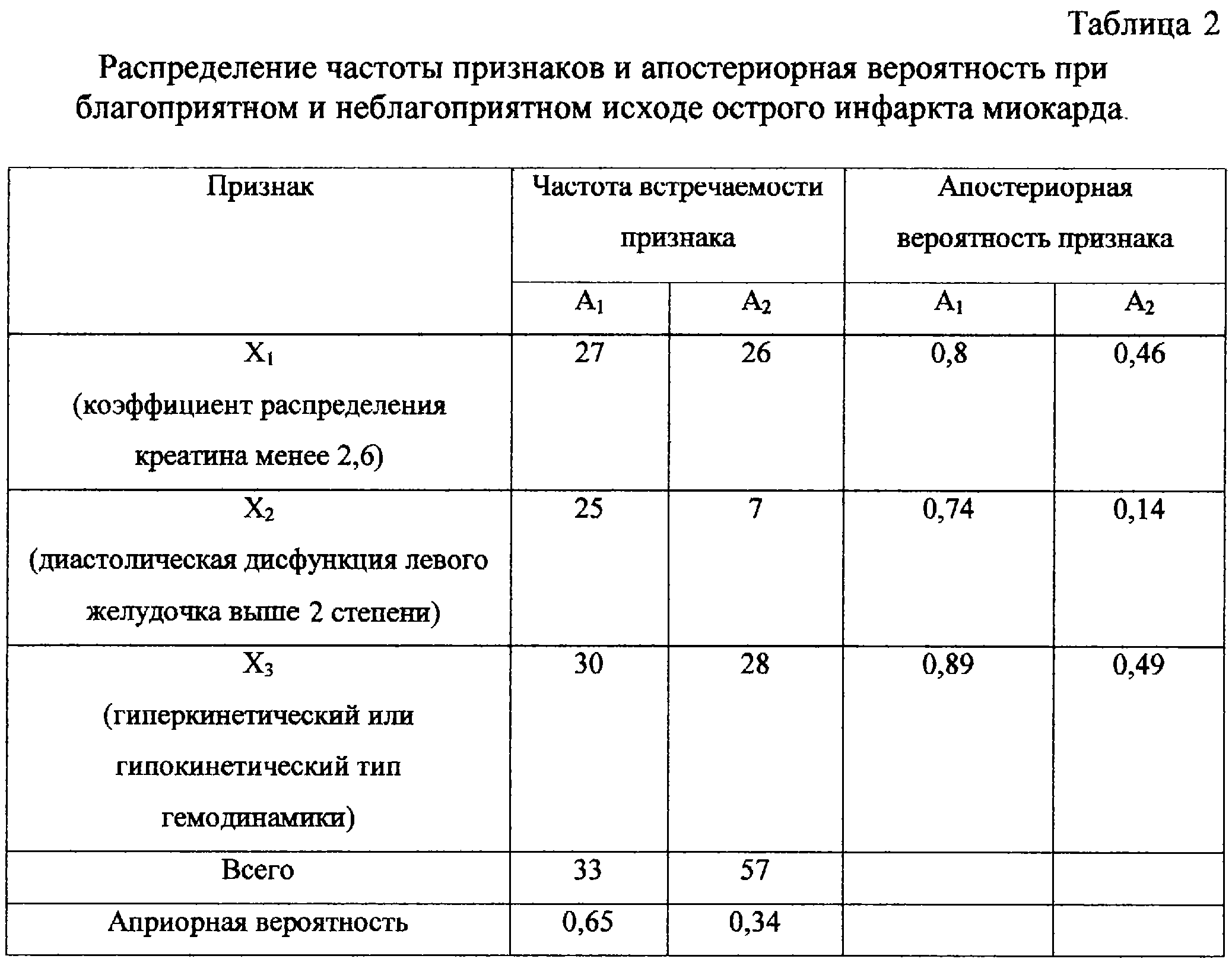 В проведенном нами исследовании было доказано методом Байеса, что сочетание вышеописанных признаков в первые сутки развития инфаркта миокарда предполагают неблагоприятный исход болезни.