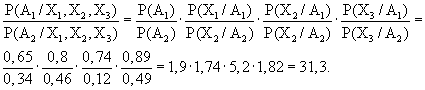 Данный результат, при критическом =0,05 и =0,05, больше 19, в связи с чем можно утверждать, что при совокупности признаков X1, Х2, Х3 в 31 раз выше вероятность возникновения неблагоприятного исхода.