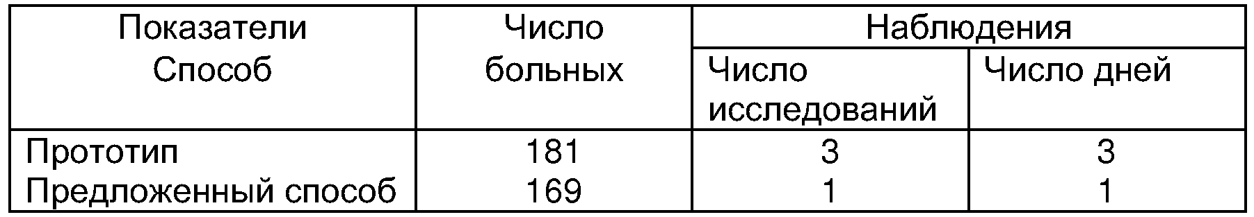 (57) Реферат: Изобретение относится к медицине и может быть использовано для выявления начального проявления патологического процесса при инфекционных заболеваниях печени и желчевыводящей системы у детей старше 1 года. Определяют высоту правой доли печени (КК) и ее толщину (ПЗ). Вычисляют отношение КК/ПЗ. Если данное отношение на 8% отличается от нормального КК/ПЗ=1,10, то выявляют начальное проявление патологического процесса. Способ позволяет повысить эффективность и сократить время выявления начального проявления патологического процесса при инфекционных заболеваниях печени и желчевыводящей системы у детей старше 1 года. 1 табл. Изобретение относится к медицине и может быть использовано для выявления групп риска по заболеваниям гепатобилиарной системы у детей. Сущность изобретения, выполняемого на базе УЗИ, в том, что у детей старше 1 года определяют коэффициент отношения высоты правой доли печени к ее толщине (КК/ПЗ), и если данное отношение на 8% превосходит нормальное КК/ПЗ=1,10, то выявляют начальное проявление патологического процесса и направляют ребенка в группу риска (см. таблицу). Известен способ ранней диагностики [1] заболеваний печени в педиатрии. Ему присущи недостатки: длительные сроки диагностики, так как требуется выполнять динамические наблюдения для сравнения последовательности численных значений коэффициента, предложенного в прототипе. В изобретении решена задача сокращения сроков диагностики. Указанная задача решена тем, что у детей старше 1 года определяют отношение КК/ПЗ правой доли печени, и если данное отношение на 8% отличается от нормального КК/ПЗ=1,10, то выявляют начальное проявление патологического процесса. Для решения задачи статистически случайной выборкой составляют группу из 523 детей, признанных здоровыми по результатам обследования классическими методами. Выполняют данной группе УЗИ гепатобилиарной системы. Находят экспериментально и подтверждают статистически наиболее информативный и стабильный параметр: отношение высоты правой доли печени к ее толщине (КК/ПЗ). В норме – КК/ПЗ=1,10. Выполнили УЗИ для 483 детей, которые имеют заболевания печени, выявленные классическими диагностическими методами. Полученное для них среднестатистическое значение КК/ПЗ сравнили с нормой. Достоверно нашли, что при различии указанных коэффициентов на 8% подтверждается с помощью УЗИ диагноз заболевания, установленный классическими методами. По вышеназванному признаку в третьей группе детей (210 пациентов) вначале провели УЗИ. По показателям КК/ПЗ в третьей группе выявляют 170 случаев заболевания печени. Проверяют диагноз 170 больных классическими методами. В 168 случаях диагноз подтвержден. В 2 случаях выполняют динамическое наблюдение. Детальное выполнение способа. Направленным в диагностический кабинет детям выполняют УЗИ в положении лежа на спине в состоянии натощак. Выполняют измерение печени в кранио-каудальном, переднезаднем и медиально-латеральном направлениях. Фиксируют результаты первичной диагностики. Вычисляют отношение КК/ПЗ. Сравнивают с нормой КК/ПЗ=1,10. Наблюдают разницу в 8%. Выявляют начальное проявление патологического процесса печени и направляют ребенка для дальнейшего наблюдения в группу риска. Пример 1. Кольцова Наташа, 6 лет. Антропометрические показатели: вес 23 кг; рост 120 см. Девочк