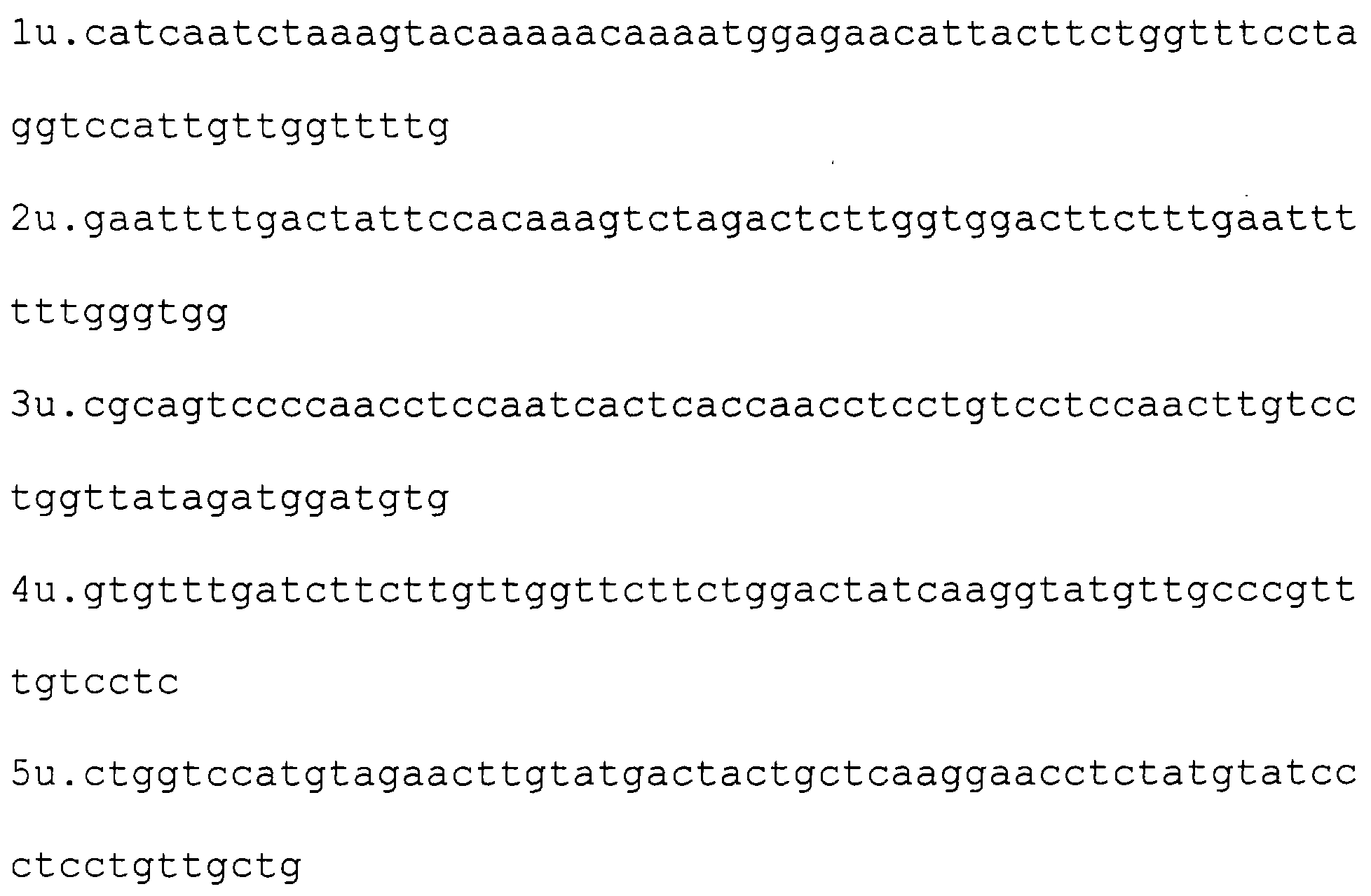 Пример 1. Получение фрагмента ДНК, кодирующего HBsAg/ayw (фрагмент А). Реакционную смесь, содержащую олигонуклеотиды 1u и 8L по 1 мкМ, олигонуклеотиды со 2u по 8u; с 1L по 7L по 10 пМ, ThermoPol буфер (10 mM KCl, 20 mМ tris-HCl рН 8.8, 10 mМ (NH4)2SO4, 2 mМ MgSO4, 0,1% Triton X-100, 250 uM dNTP) и 5 единиц активности Vent полимеразы инкубируют в течение 30 циклов изменения температуры. Каждый цикл включает инкубацию при 95