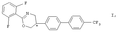 Готовят тестируемые ацетоновые растворы, содержащие тестируемые соединения в концентрациях 15, 1,5, 0,15 и 0,015 част./млн. 9,9 мл каждого тестируемого раствора смешивают с 14,85 г культуральной среды для личинок блох и сушат в течение примерно 12 ч. Слегка комковатую сухую культуральную среду механически измельчают вновь до тех пор, пока она не станет гомогенной и свободно текучей. Затем ее вновь переносят в сосуды для разведения блох. В каждый сосуд добавляют 100-200 яиц блох, сосуды неплотно закрывают ватным тампоном и помещают в термостат с температурой 25-26 С и относительной влажностью примерно 60%. Через 21 день оценивают воздействие различных концентраций тестируемых соединений: с помощью стереоскопического микроскопа определяют наименьшую эффективную концентрацию. Активность оценивают по количеству вылупившихся личинок, по развитию личинок, по окукливанию и вылупляемости молодых блох. В этом опыте энантиомеры А формулы I проявили выраженную активность. Установлено, что вплоть до концентрации 10 част./млн развитие молодых блох полностью подавлялось. Таким образом, энантиомер А 2-(2,6-дифторфенил)-4-(4′-трифторметилбифенил-4-ил)-4,5-дигидрооксазола является наиболее активным из тестируемых соединений. В противоположность этому энантиомер Б формулы I в таких же условиях практически не обладал активностью.