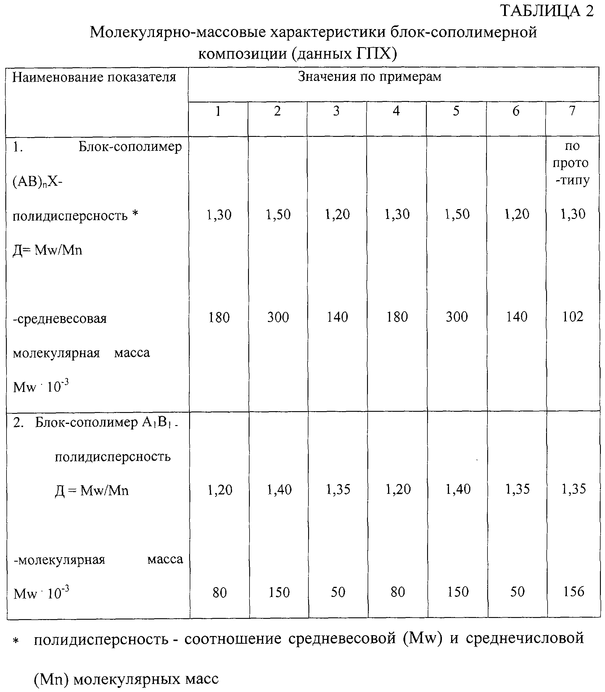 Условия получения блок-сополимерных композиций приведены в таблице 1. Молекулярно-массовые характеристики, а также значения ряда показателей блок-сополимерных композиций, полученных по примерам 1- 6, приведены в таблицах 2 и 3.