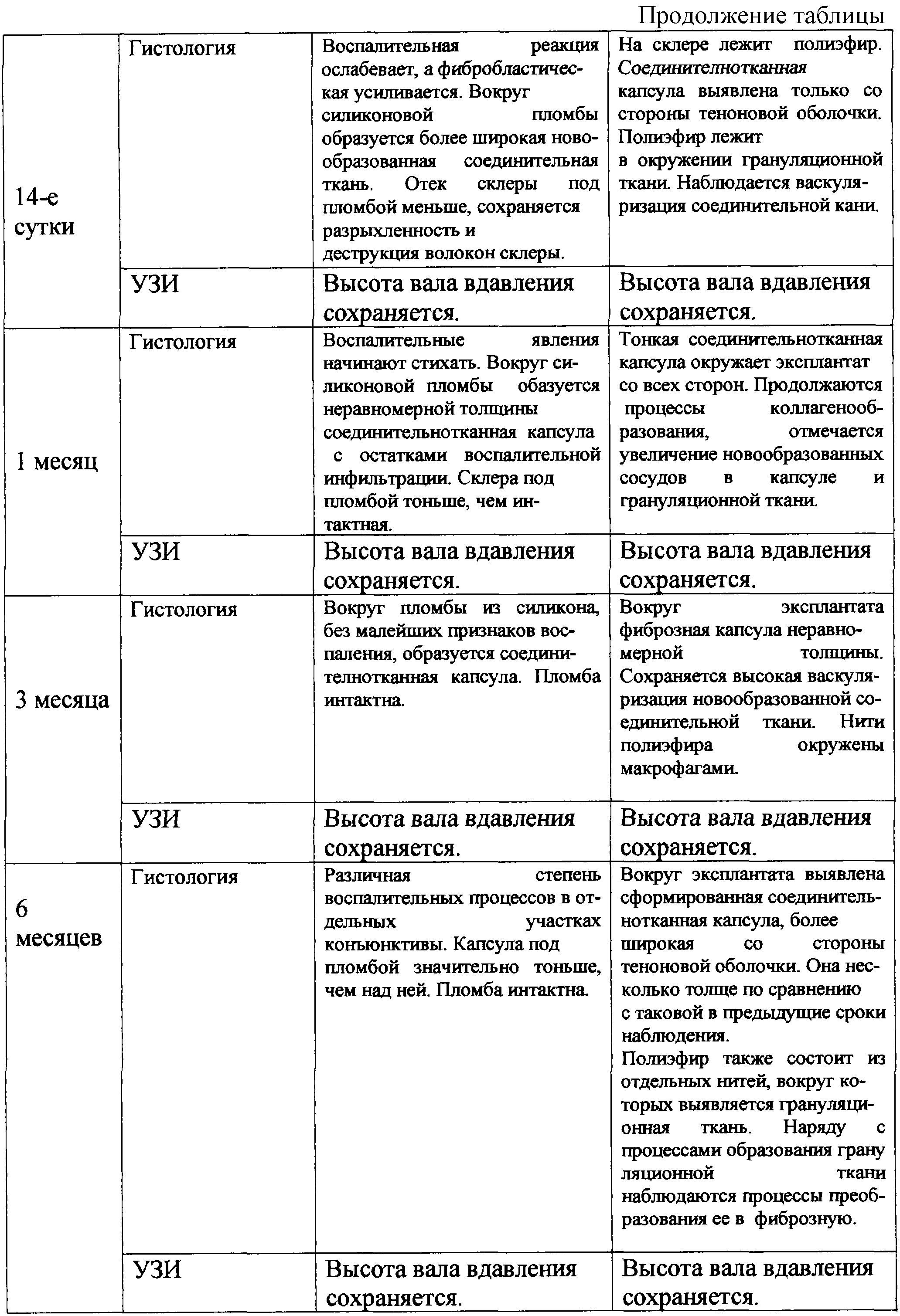 Морфологические исследования проводили с помощью традиционных гистологических методов. На всех сроках наблюдения эхографически исследовалась высота вала вдавления склеры.