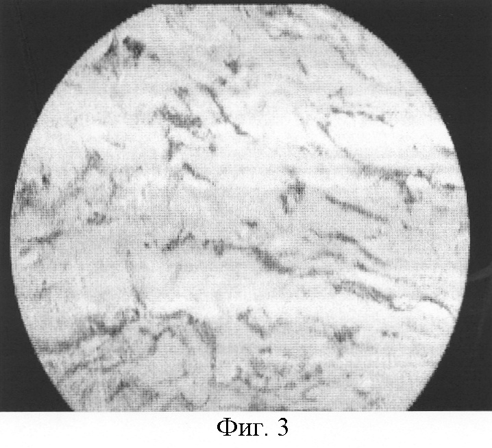 Фиг. 3. Эластические волокна в рубце на 30-е сутки после ультрафонофореза 1% масляного раствора экстракта высокополярных липидов иловых сульфидных грязей на область кожного рубца. Окраска орсеином по Унна-Тенцеру, х 600.