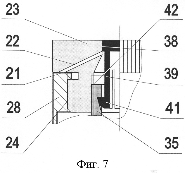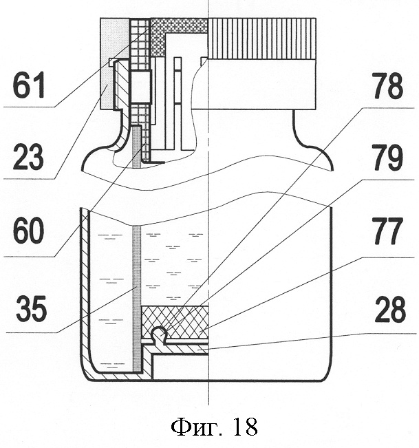 61. Тара по п.58, отличающаяся тем, что упомянутая пробка включает фиксатор охватываемого сосуда и переходника, и такой фиксатор включает как минимум одно воздухопроводное отверстие, а упомянутый переходник с воздухоподводным отверстием в верхней и/или нижней части включает посадочную поверхность для указанного фиксатора, соответствующая сопряженная поверхность которого обеспечивает с указанной посадочной неразъемное соединение, при этом указанный фиксатор обеспечивает жесткое неразъемное соединение переходника с пробкой и/или с упомянутым охватываемым сосудом.