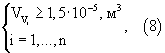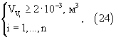 – суммарный объем рабочих емкостей сосудов, наполненных вином i-й марки, например, емкости 30
