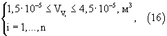 где – суммарный объем рабочих емкостей сосудов, наполненных вином i-й марки.