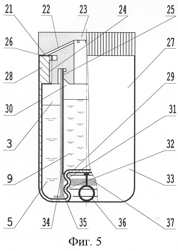 25. Тара по п.20, отличающаяся тем, что упомянутая пробка включает как минимум одно воздухоподводное отверстие, один из торцов которого связан с упомянутой рабочей емкостью охватываемого сосуда, а другой герметично закрыт сопряжением пробки с охватывающим сосудом.