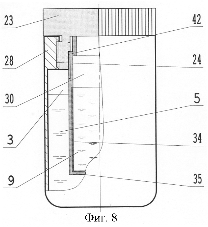 69. Тара по любому из пп.19-68, отличающаяся тем, что охватывающий сосуд в нижней части в месте упомянутой в п.19 посадочной поверхности включает полость, в которую установлен упругий блокиратору входящий с охватывающим сосудом в упругое соединение, обеспечивающее гарантированное плотное герметичное разъемное соединение охватываемого и охватывающего сосудов.