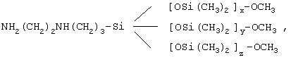 Предварительно в реакторе готовят смесь метилгидридсилоксана с содержанием активного водорода 1.6-1.7% с катализатором отверждения аминоэтиламинопропилтриметоксисиланом в соотношении 10:1. Из полученной смеси готовят 20%-ный раствор модификатора в метиленхлориде. Таким образом, раствор модификатора имеет следующую рецептуру:
