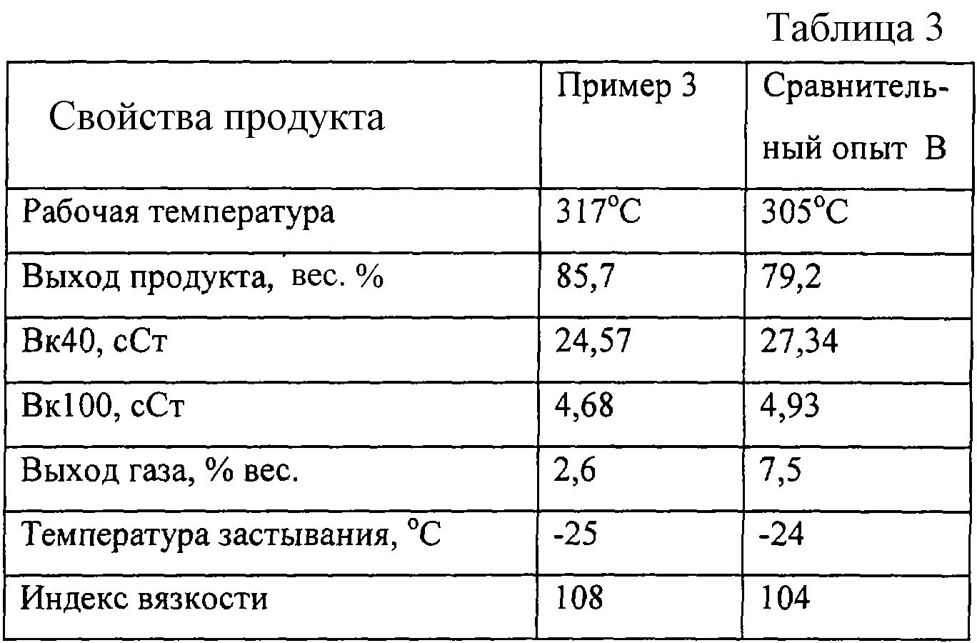 Повторяют пример 1, за исключением того, что вместо ZSM-5 используют SSZ-32 и деалюминирование осуществляют следующим образом: в 1420 мл деионизированной воды растворяют 0,353 г гексафторсиликата аммония. Затем этот раствор пропускают через слой 45 г экструдата при температуре окружающей среды в течение 17 ч. После выделения из раствора экструдат промывают деионизированной водой, сушат 2 ч при 150 С и затем прокаливают 2 ч при 480 С. Содержание платины в катализаторе такое же, как в примере 1. Свойства полученного продукта – базового смазочного масла и выход в опыте каталитической депарафинизации – приведены в таблице 3.