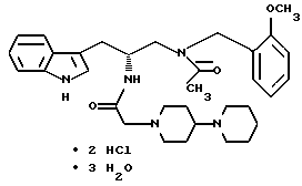 (54) ТРИГИДРАТ ДИГИДРОХЛОРИДА (R)-3-(1Н-ИНДОЛ-3-ИЛ)-1-[N-(2-МЕТОКСИБЕНЗИЛ)АЦЕТИЛАМИНО]-2-[N-(2-(4-(ПИПЕРИДИН-1-ИЛ)ПИПЕРИДИН-1-ИЛ)АЦЕТИЛ)АМИНО]ПРОПАНА И ФАРМАЦЕВТИЧЕСКИЙ СОСТАВ