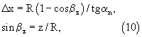 x=R(1-cos z)/tg n,