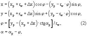 Рассчитав по уравнениям (1) координаты точки перегиба на ИКР xрп, yрп и pп= п, найдем по уравнениям (2) координаты точки перегиба в горловом сечении торцового профиля хп, уп и угол профиля п в точке перегиба, определяемой радиусом