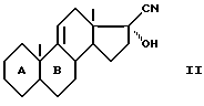Инфракрасный спектр: (CHCl3)Поглощение при 2217 см-1 (CN), 1660, 1630 и 1593 см-1 (C = C). Спектр ЯРМ: (CDCl3 + C5D5N – 300 МГц – млн-1) 0,91 (s): 18-CH3; 1,23 (s): 19-CH3; 3, 96: кеталь; 5,44 (m) – 5,45 (m): H6 и H11; 6,65: H16. Этап Б: циклический 3-(1,2-этандиил) ацеталь прегна-5,9 (11), 16 (17)-триен-3,20-диона В среде инертного газа смешивают 9 г продукта, полученного на Этапе A, и 27 см3 толуола, после чего вводят 27 см3 3 М раствора метилмагнийхлорида в тетрагидрофуране. Затем за 3 ч 30 мин нагревают до температуры +60/65oC, охлаждают в ванне лед – метанол и добавляют 36 см3 тетрагидрофурана, после чего вливают под азотным давлением, при температуре не выше +10oC, в смесь 81 см3 льда, 27 см3 воды и 135 см3 уксусной кислоты, охлажденной с помощью ванны лед – метанол. Температуре дают подняться примерно до +20oC, смесь концентрируют при пониженном давлении, слегка нагревая в водяной бане при температуре +45oC, а затем вливают в 20 объемов смеси воды и льда. Температуре дают вновь подняться при взбалтывании, а затем центрифугируют кристаллы, промывают их водой и высушивают. Таким образом получают 9,03 г сырого продукта, который сгущают в смеси 45 см3 метанола, 5 см3 воды и 0,5 см3 триэтиламина. Затем нагревают при температуре кипения в течение 1 ч 30 мин и охлаждают при комнатной температуре, центрифугируют кристаллы, промывают их раствором метанола, содержащим 10% воды и высушивают. В результате получают 7,12 г искомого продукта (tпл 217-219oC). Инфракрасный спектр: (CHCl3) Поглощение при 1664, 1590, 1361 см-1: ненасыщенный метилкетон , .Спектр ЯРМ: (CDCl3 + C5D5N – 300 МГц – млн-1) 0,87 (s): 18-CH3; 1,22 (s): 19-CH3; 2,26 (s): метилкетон; 3,94 (m): кеталь; 5,44 – 5,45 (m): -CH= в положении 11 и 5; 6,71 (t): -CH= в положении 16. Этап В: циклический 3-(1,2-этандиил)-ацеталь 16 ,17 – эпокси-прегна-5,9 (11)-диен- 3,20-дионаВ среде инертного газа смешивают 7 г продукта, полученного на Этапе Б, 70 см3 тетрагидрофурана и 35 см3 метанола. Затем вводят 7 см3 концентрированного едкого натра и 7 см3 перекиси водорода при 200 объемах. После этого нагревают в течение 17 ч при температуре +40/45oC, охлаждают при комнатной температуре и вливают в смесь 70 см3 воды и 70 г льда. Затем выдерживают при взбалтывании, давая температуре подняться, после чего центрифугируют, промывают водой до исчезновения окисляющей способности и высушивают. Таким образом получают 7,08 г искомого продукта, который используется без дополнительной обработки на следующем этапе. Инфракрасный спектр: (CHCl3) Поглощение при 1704 (C = O), 901-855 см-1 (эпоксид). Спектр ЯРМ: (CDCl3 + C5D5N – 300 МГц – млн-1) 1,00 (s): 18-CH3; 1,20 (s): 19-CH3; 2,04 (s): метилкетон; 3,74 (s): -CH= в положении 16; 3,94 (m): кеталь; 5,40 (m) 5,51 (t): -CH= в положении 11 и 5. Этап Г: циклический 3,20 бис-(1,2-этандиил)-ацеталь 16 ,17 – эпокси-прегна-5,9 (11)-диен-3,20-дионаВ среде инертного газа смешивают 4 г продукта, полученного на Этапе В, 40 см3 метиленхлорида, 40 см3 этиленгликоля, 20 см3 этилортоформиата и 0,3 г обезвоженной паратолуолсульфокислоты. По истечении 7 ч концентрируют при пониженном давлении в 1 мбар при комнатной температуре, а затем выдерживают при взбалтывании в течение 30 мин. После этого вливают под 300 см3 10-процентного водного раствора бикарбоната натрия и дегазируют в течение 30 мин. Затем центрифугируют, промывают водой и высушивают образовавшиеся кристаллы. Продукт очищают методом хроматографии на двуокиси кремния (элюант : толуол – этилацетат (8: 2)) с 0,05% триэтиламина. Затем полученный продукт поглощают циклогексаном, центрифугируют и высушивают при пониженном давлении. Так