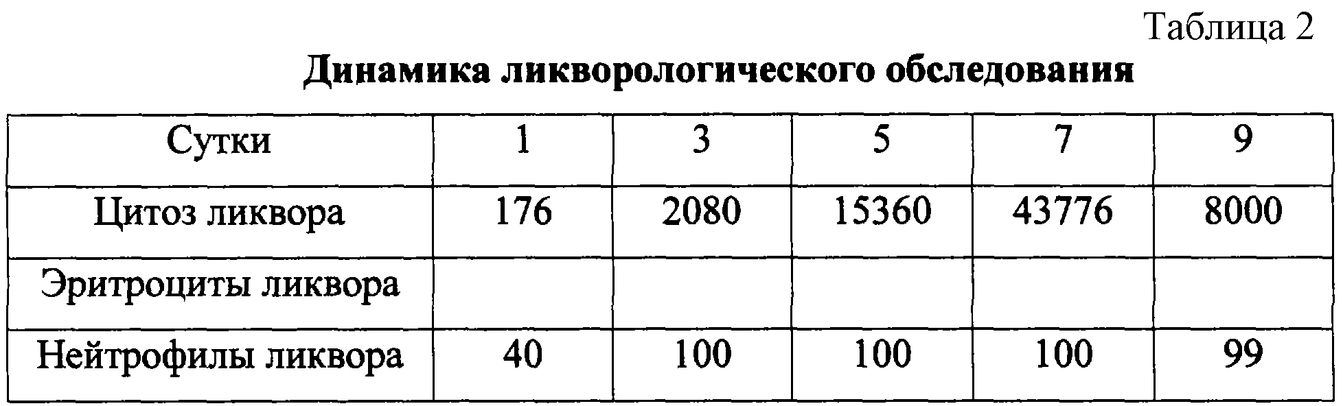 По общепринятым методикам лишь на 3-е сутки отмечены высокие цифры цитоза ликвора (ц-2080; н-100%) и на основании наличия менингиального синдрома, воспалительной реакции крови (увеличение лейкоцитарного индекса интоксикации более 6), данных ликворологического обследования (цитоз по данным клинического анализа) был выставлен диагноз менингита (табл.2).