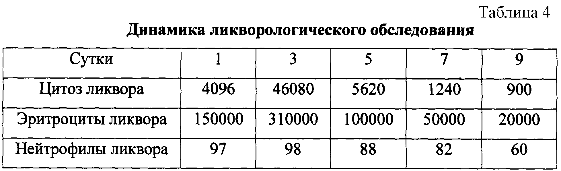 На основании показателя ЛФ в первые и третьи сутки был предположен диагноз посттравматического менингита, симптоматика которого (цитоз при анализе ликвора и лейкоцитарный индекс интоксикации по данным клинического анализа крови, табл.4) отставала на сутки по сравнению с иммунобиохимическими показателями ликвора (цереброспинальная жидкость была получена после регресса симптомов дислокации головного мозга).