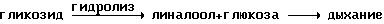 (57) Реферат: Изобретение относится к эфиромасличной промышленности и может быть использовано для послеуборочной обработки и переработки зернового эфиромасличного сырья. При ферментации эфиромасличного сырья отделяют фракцию мелких и расколотых плодов. Хранят ее 1-3 суток без доступа воздуха, затем нагревают полем СВЧ до 70-85°С и отлеживают в течение 0,2-0,4 ч. Оставшуюся фракцию перед обработкой нагревают СВЧ-полем до 85-90°С с отлежкой в течение 0,4-1,0 ч. В результате увеличивается выход эфирного масла и улучшается его фракционный состав. Изобретение относится к эфиромасличной промышленности и касается послеуборочной обработки и переработки зернового эфиромасличного сырья. Известен способ подготовки свежесобранных плодов кориандра к переработке, включающий отделение фракции мелких и расколотых плодов с влажностью до 13%, выдерживание ее в герметичных условиях и при 25-30oC 7-13 суток и продувку оставшейся части бескислородной газовой смесью (RU. N 201335, БИ N 19, 1994, с. 114). Указанный способ имеет следующие недостатки: – не реализуется весь потенциал по накоплению эфирного и жирного масел в свежеубранных плодах; – не достигается наилучший фракционный состав эфирного масла. Задача изобретения – увеличение выхода эфирного масла и улучшение его фракционного состава. Задача решается тем, что в способе ферментации масличного сырья, предусматривающем отделение фракции мелких и расколотых плодов, отделенную фракцию хранят 1-3 суток без доступа воздуха, затем нагревают полем СВЧ до 70-85oC и отлежкой в течение 0,2 – 0,4 ч, а оставшуюся фракцию перед обработкой нагревают СВЧ-полем до 85-90oC с отлежкой в течение 0,4-1,0 ч. Согласно экспериментальным данным во фракции расколотых плодов кориандра происходит увеличение эфиромасличности на 7-10% по сравнению с исходным, а в целых плодах – на 8-13%. Возрастание эфиромасличности происходит, в основном, за счет наиболее ценного компонента – линалоола. Его содержание после СВЧ-обработки увеличивается относительно первоначального содержания на 4-8%. В обеих фракциях возрастание эфиромасличности происходит, очевидно, за счет гидролиза гликозидов компонентов эфирного масла. В пользу такого утверждения говорит тот факт, что недавно были обнаружены в плодах кориандра гликозиды линалоола, за счет которого, в основном, происходит процесс накопления эфирного масла. Возможный механизм увеличения эфиромасличности может выглядеть следующим образом: ![]() При СВЧ-обработке резко возрастает интенсивность дыхания плодов, в котором участвует глюкоза, высвободившаяся после гидролиза гликозидов. Это по принципу отрицательной обратной связи может влиять на активность фермента -глюкозидазы, катализирующей гидролиз гликозидов.