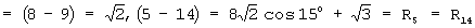 , и радиусах R5=R14 точек i=5, 14 относительно центра О по теореме косинусов определяются: для