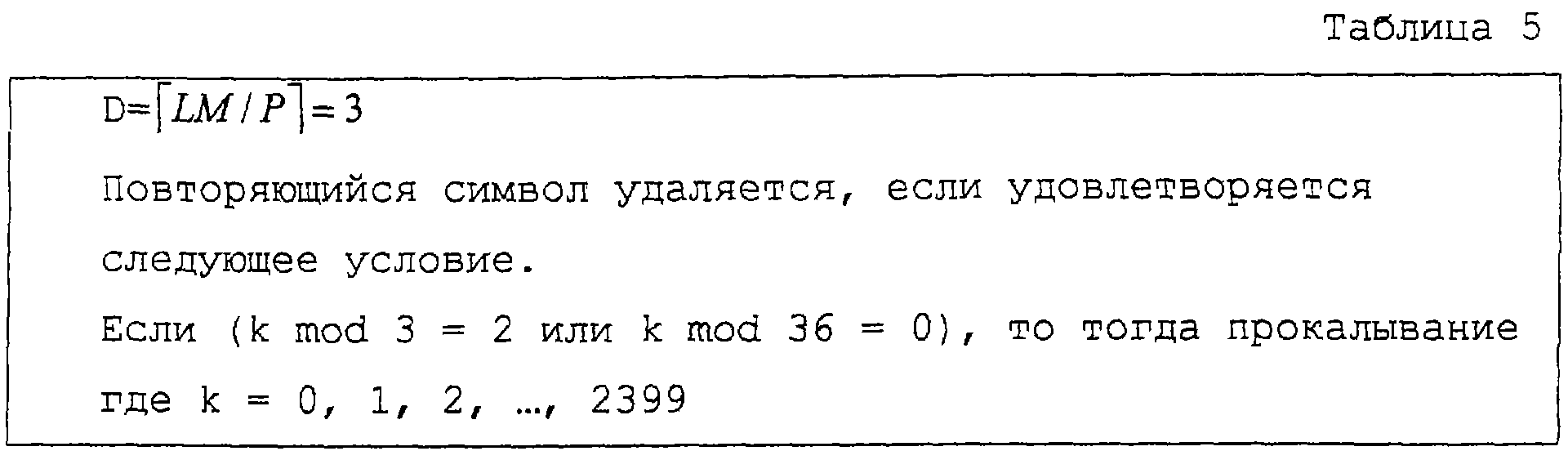 Согласно второму варианту осуществления изобретения в алгоритме по таблице 6, если P=0, прокалывание не выполняется. В процессе прокалывания прокалываются каждый D1-й символ и каждый ((кратное D2)-