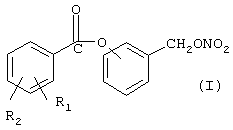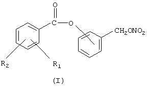 1. Способ получения соединения формулы (I) где R1 означает ОСОR3 группу, где R3 означает метил, этил или линейный или разветвленный С3-С5 алкил; R2 означает водород; предпочтительно в (I) R1 является ацетокси и находится в ортоположении по отношению к карбоксильной группе, R2 означает водород; кислород сложноэфирной группы связан с ароматическим кольцом, замещенным (нитрокси)метиленовой группой, в орто-, мета- или пара-положении по отношению к (нитрокси)метиленовой группе; предпочтительно это мета-положение; причем упомянутый способ включает следующие стадии: а) реакция галогенида производного салициловой кислоты формулы (I-A) где Hal = С1, Вr и R1 и R2 имеют вышеуказанные значения, с гидроксибензиловым спиртом в присутствии основания в органическом растворителе или в смеси воды со смешивающимся или несмешивающимся с водой органическим растворителем для получения соединения (I-B), имеющего следующую формулу: где R1 и R2 имеют вышеуказанные значения; b) нитрование соединения (I-B) в безводных условиях в инертном органическом растворителе, который имеет точку кипения ниже, чем 200 с) выделение конечного продукта путем добавления воды к органической фазе, разделения фаз, высушивания и выпаривания органической фазы. 2. Способ по п.1, где на стадии а) органические растворители являются C1-C4 алифатическими спиртами; ароматическими углеводородами, алифатическими сложными эфирами, хлорированными органическими растворителями, алифатическими и циклоалифатическими кетонами. 3. Способ по одному из п.1 или 2, где на стадии а) реакцию проводят при температуре в интервале от -20 до +50 4. Способ по п.1, где на стадии b) нитрование проводят при температуре в интервале от -20 до +40 5. Способ по п.4, где нитрование проводят в присутствии ангидрида, который предварительно смешан с гидроксиэфиром (I-B), и получившаяся смесь добавлена в раствор азотной кислоты в инертном органическом растворителе. 6. Способ по п.5, где ангидрид является уксусным ангидридом. MM4A – Досрочное прекращение действия патента СССР или патента Российской Федерации на изобретение из-за неуплаты в установленный срок пошлины за поддержание патента в силе