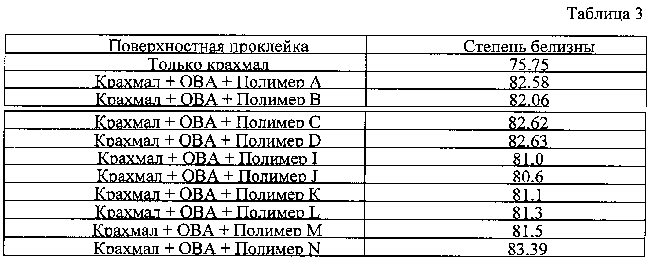 Способ касается проклейки поверхности сформированного бумажного или картонного полотна или целлюлозной суспензии, а также улучшения пригодности для печатания листа бумаги с помощью состава и может быть использован в целлюлозно-бумажной промышленности. Состав содержит водную дисперсию полимерных частиц со степенью дисперсности до 1 мкм, предпочтительно 80-200 нм. Полимерные частицы содержат нерастворимую в воде полимерную матрицу, состоящую из этиленненасыщенного мономера или смеси этиленненасыщенных мономеров. На поверхности полимерных частиц расположен олигомер, образованный из смеси мономеров, содержащей (мет)акриламид и органический меркаптан, предпочтительно додецилмеркаптан. Олигомер в составе может дополнительно содержать этиленненасыщенный мономер, включающий группу третичного амина или группу четвертичного аммония, предпочтительно диметиламиноэтилметакрилат и другие этиленненасыщенные мономеры, предпочтительно акриловую кислоту или малеиновый ангидрид. Техническим результатом является улучшение водонепроницаемости, белизны и пригодности для печатания обработанной бумаги. 3 н.п. и 24 з.п. ф-лы, 6 табл. Настоящее изобретение относится к новым составам, содержащим водную дисперсию нерастворимых в воде полимерных частиц, при этом полимерные частицы содержат на своей поверхности олигомерное соединение. Данное изобретение также охватывает способ проклейки бумаги и способ повышения пригодности бумаги для печатания. Известно получение дисперсий нерастворимых в воде полимерных частиц путем эмульсионной полимеризации или суспензионной полимеризации. В таких способах нерастворимый в воде мономер или смесь мономеров обычно диспергируют в водную дисперсионную среду с образованием капель мономера. При водной эмульсионной полимеризации или водной суспензионной полимеризации обычная практика заключается в использовании поверхностно-активных ингредиентов, таких как эмульгаторы, поверхностно-активные вещества или стабилизаторы полимеризации. Обычно такие соединения имеют высокий гидрофильно-липофильный баланс (ГЛБ) так, чтобы соединение могло разделяться в водной дисперсионной среде. Известно использование олигомерных соединений в качестве эмульгаторов или стабилизаторов полимеризации при эмульсионной полимеризации нерастворимых в воде мономеров, таких как стирол, акрилонитрил, этилакрилат и бутилакрилат и т. д. Такие составы получают в виде каучука или пластмассовых латексов, из которых можно получить полимерное твердое тело. Такие составы, как правило, получали для изготовления продуктов, обладающих низкой вязкостью и пониженными пенообразующими характеристиками и способных образовывать пригодный твердый каучук или пластмассы. В области изготовления бумаги и картона стандартная практика заключается в проклейке бумаги как в массе, так и снаружи. Проклеивающее вещество придает бумаге или картону гидрофобность и повышает сопротивление прониканию жидкости, особенно воды. Проклейка в массе обычно достигается за счет введения проклеивающего вещества в бумажную массу перед обезвоживанием на сетке бумагоделательной машины. Проклеивающим веществом может быть нереакционноспособный клей, такой как канифольный клей, однако чаще – реакционноспособный клей, такой как алкенил янтарный а