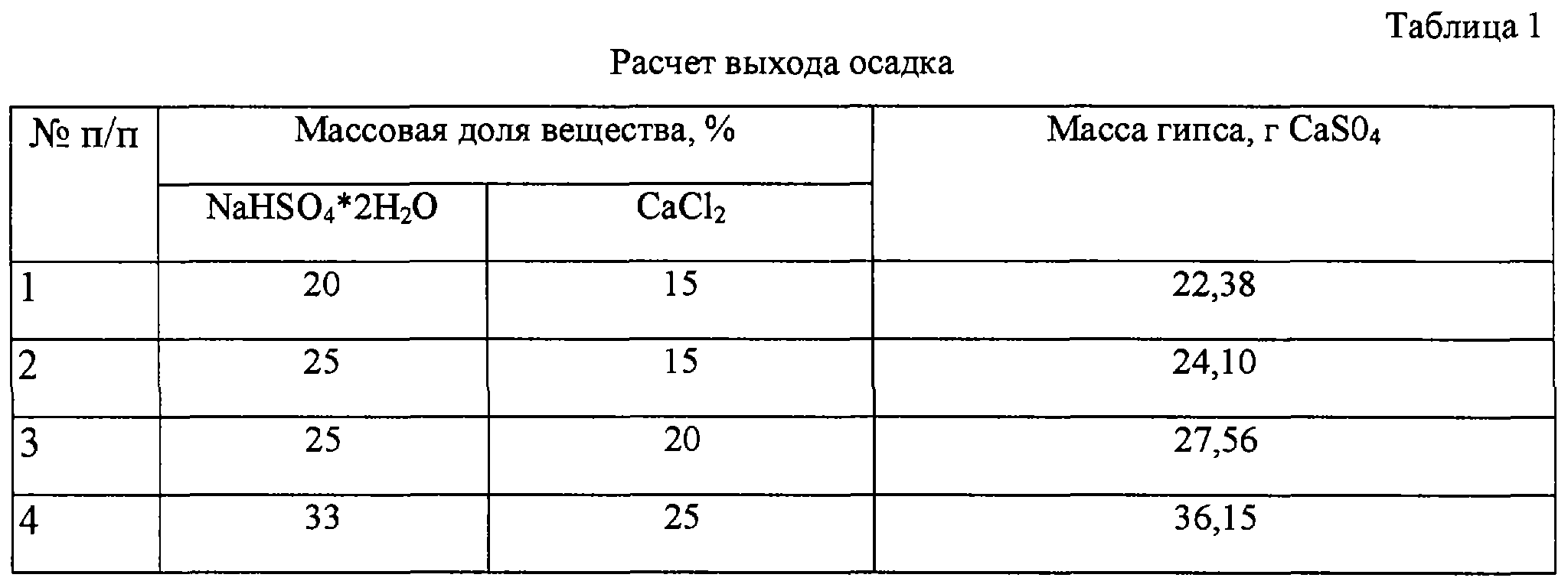 2H2O и СаСl2 в соотношении 1:1, и выдерживали на реакцию в течение 30 минут в постоянных термобарических условиях (Р=1,5 МПа, Т=28°С).