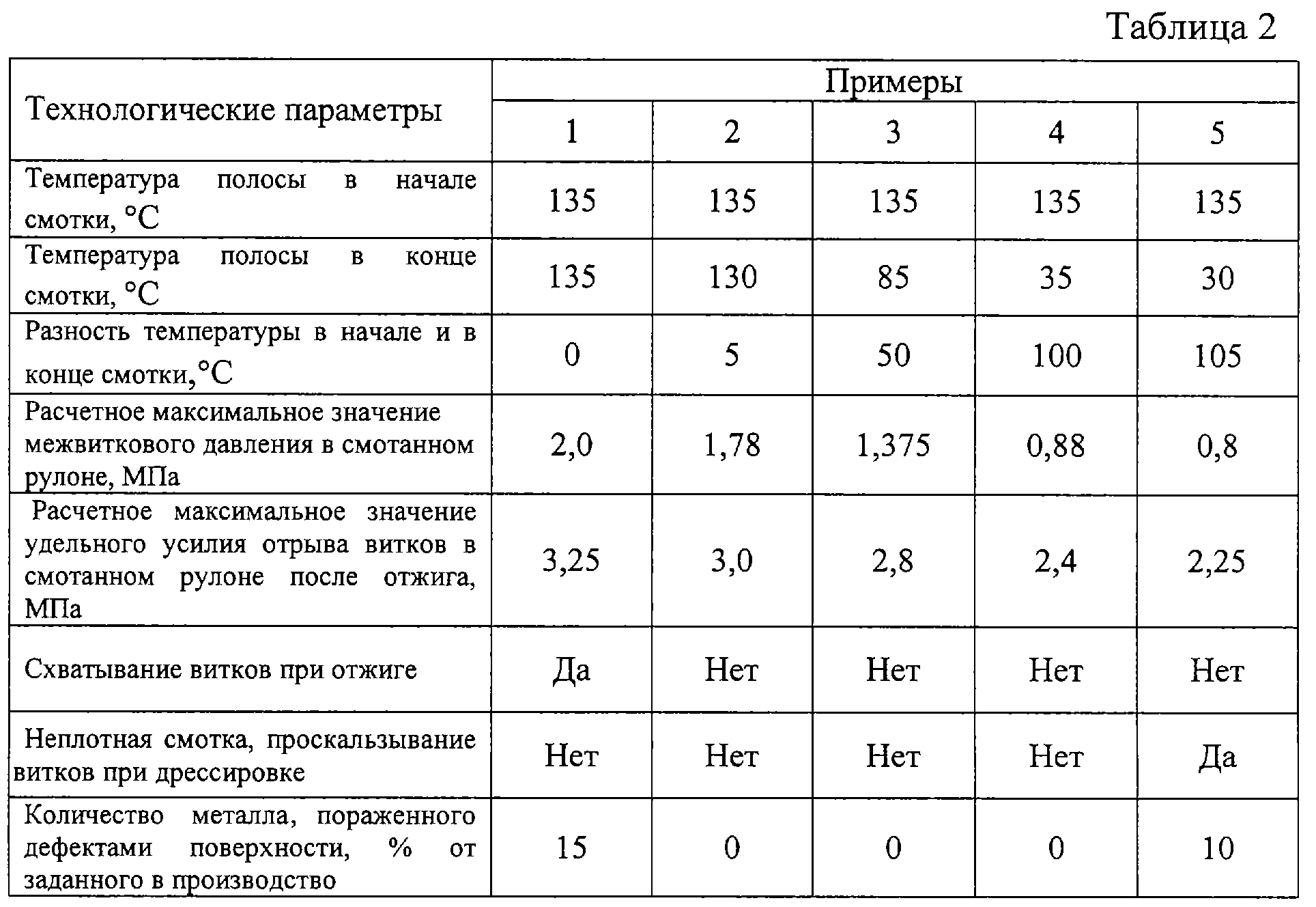 – продолжительность действия температуры Т, мин; Ra – шероховатость поверхности полосы, мкм. Диапазоны изменения параметров, в которых получена зависимость: р=0…50 Н/мм2; т=0…180 мин; Т=600…730°С; Ra=0,5…1,7 мкм соответствуют диапазонам изменения этих технологических параметров в процессе прокатки и формирования рулона, а также в ходе отжига рулонов металлических полос в колпаковых печах.