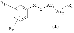 Изобретение относится к новым триароматическим соединениям, аналогам витамина D, к способу их получения и к их применению в фармацевтических композициях, предназначенных для использования в области медицины или ветиринарии, или же в косметических композициях. Соединения согласно изобретению обладают выраженной активностью в отношении клеточной пролиферации и дифференцировки и могут найти применение, в частности, при локальном и системном лечении дерматологических (или других) заболеваний, связанных с нарушением кератинизации, заболеваний с воспалительной и/или иммуноаллергической компонентой и гиперпролиферации тканей эктодерминального происхождения (кожа, эпителий, …), как доброкачественной, так и злокачественной. Эти соединения могут быть использованы, кроме того, для борьбы со старением кожи, вызванным воздействием света или возрастом, и для лечения нарушений при заживлении ран. Соединения согласно изобретению можно также использовать в косметических композициях для гигиены тела и для ухода за волосами. Витамин D является основным витамином, используемым для профилактики и лечения дефектов минерализации хрящей (рахитизм) и костей (остеомаляция) и даже некоторых форм остеопороза у пожилого человека. Однако, в настоящее время было обнаружено, что функции его выходят далеко за пределы регуляции костного метаболизма и кальциевого гомеостаза. Среди новых функций можно назвать воздействие на клеточную пролиферацию и дифференцировку и регуляцию иммунной защиты. Эти функции позволяют разработать новые пути лечения в области дерматологии, онкологии, а также в области аутоиммунных заболевании и в области трансплантаций органов или тканей. Эффективное терапевтическое лечение долгое время наталкивалось на токсичность этого витамина (гиперкальциемия, иногда со смертельным исходом). Некоторые из синтезированных за последнее время структурных аналогов витамина D активны только в отношении дифференцировки клеток, но не воздействуют на кальциевый метаболизм. Одной из целей настоящего изобретения является получение новых соединений, являющихся структурными аналогами витамина D, которые обладают селективной активностью в отношении пролиферации клеток и дифференцировки клеток без проявления гиперкальциемирующей активности. Другой целью настоящего изобретения является получение новых соединений, аналогов витамина D, которые более легко синтезируются и, следовательно, они более экономичны по отношению к тем, которые известны в уровне техники. Таким образом, настоящее изобретение относится к соединениям, имеющим следующую общую формулу (I): в которой: R1 означает атом водорода, радикал СН3 или радикал -(CH2)r-OR4; R2 означает радикал -(CH2)s-OR5; причем r, s, R4 и R5 имеют нижеуказанные значения; X-Y означает связь, выбираемую из связей следующих формул (a)-(d), которые можно читать слева направо или наоборот: причем R6 и W имеют нижеуказанные значения; Ar1 означает цикл следующих формул (e)-(i): причем R7, R8 и R9 имеют нижеуказанные значения; Ar2 означает цикл следующих формул (j)-(n): причем R10, R11 и R12 имеют нижеуказанные значения; R3 означает радикал формулы причем t, R13, R14 и R15 имеют нижеуказанные значения; причем: r и s, одинаковые или разные, означают 1 или 2; R4 и R5, одинаковые или разные, означают атом водорода, ацетил, бензоил, триметилсилил, трет-бут