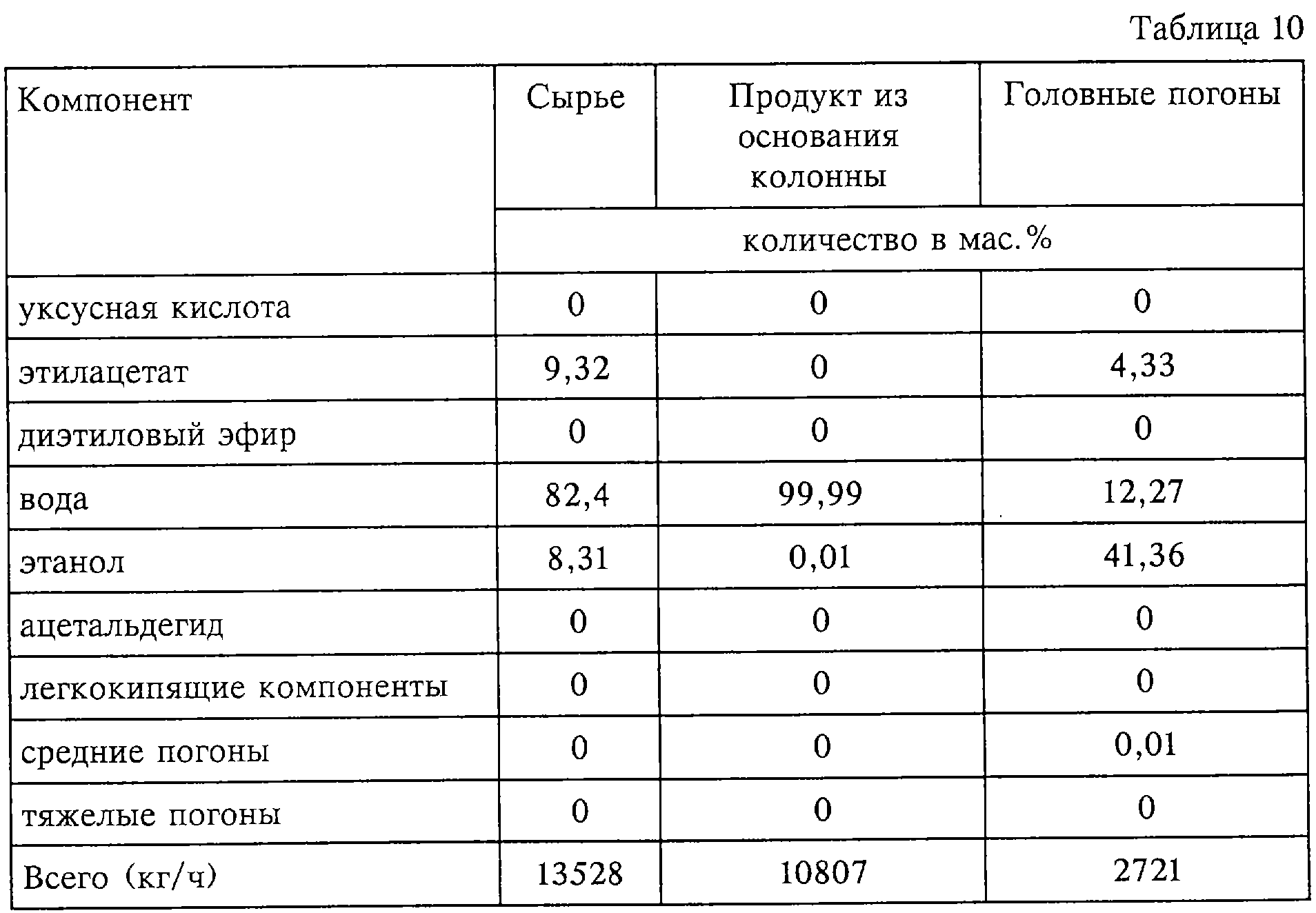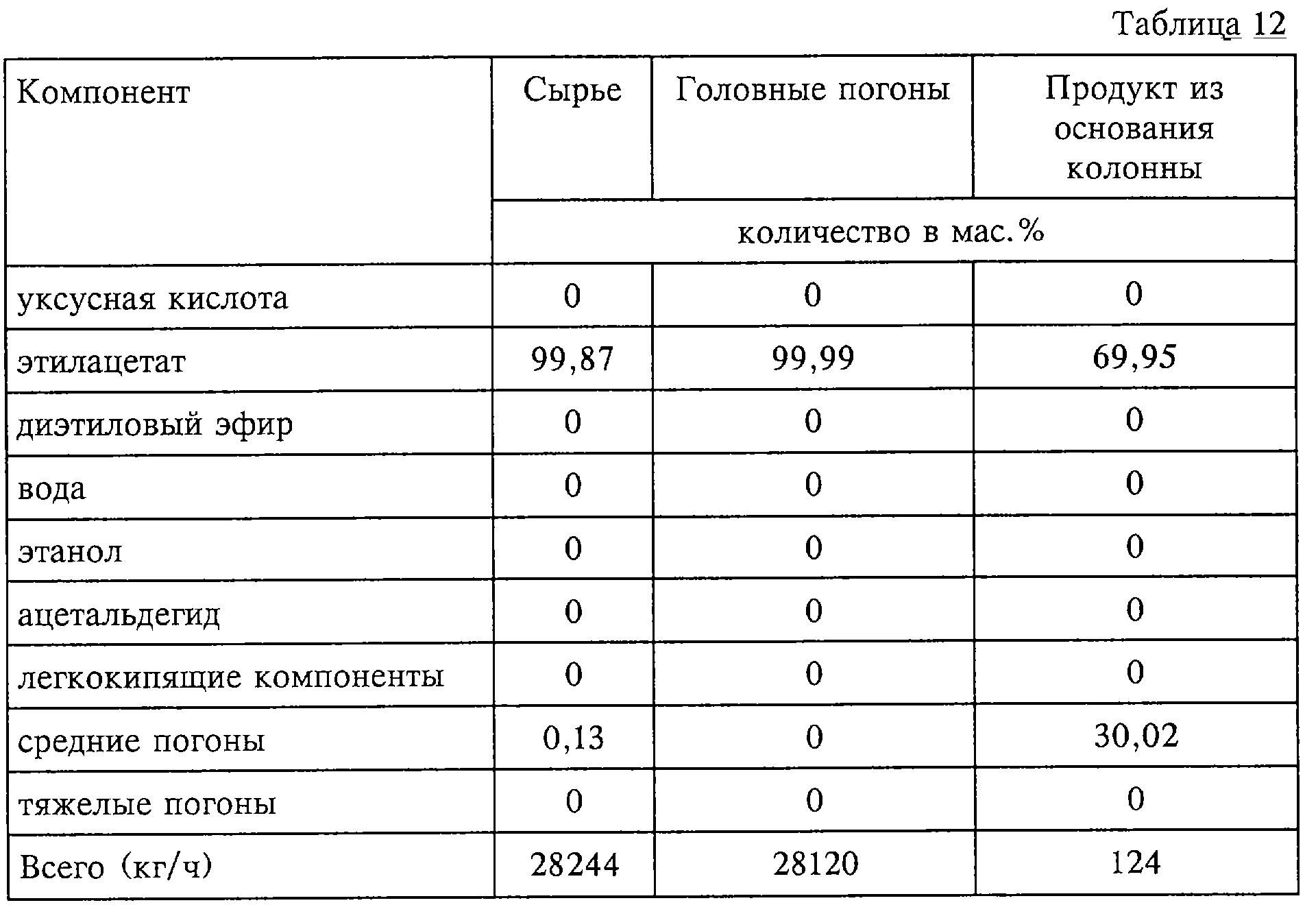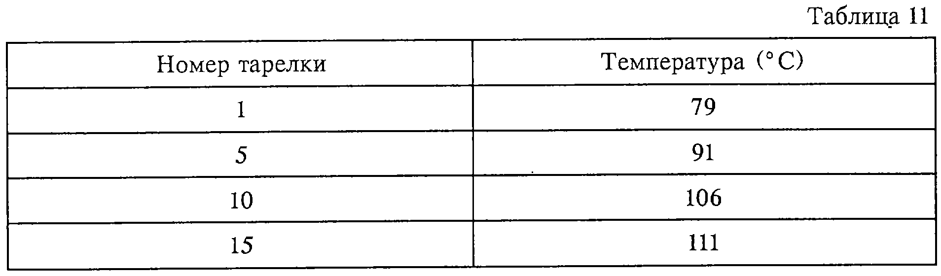 12. Способ по п.10 или 11, при котором температурный профиль колонны для удаления апетальдегида представлен следующим образом: температура на первой тарелке составляет 87°С, на пятой тарелке 97,0°С, на десятой тарелке 100°С.